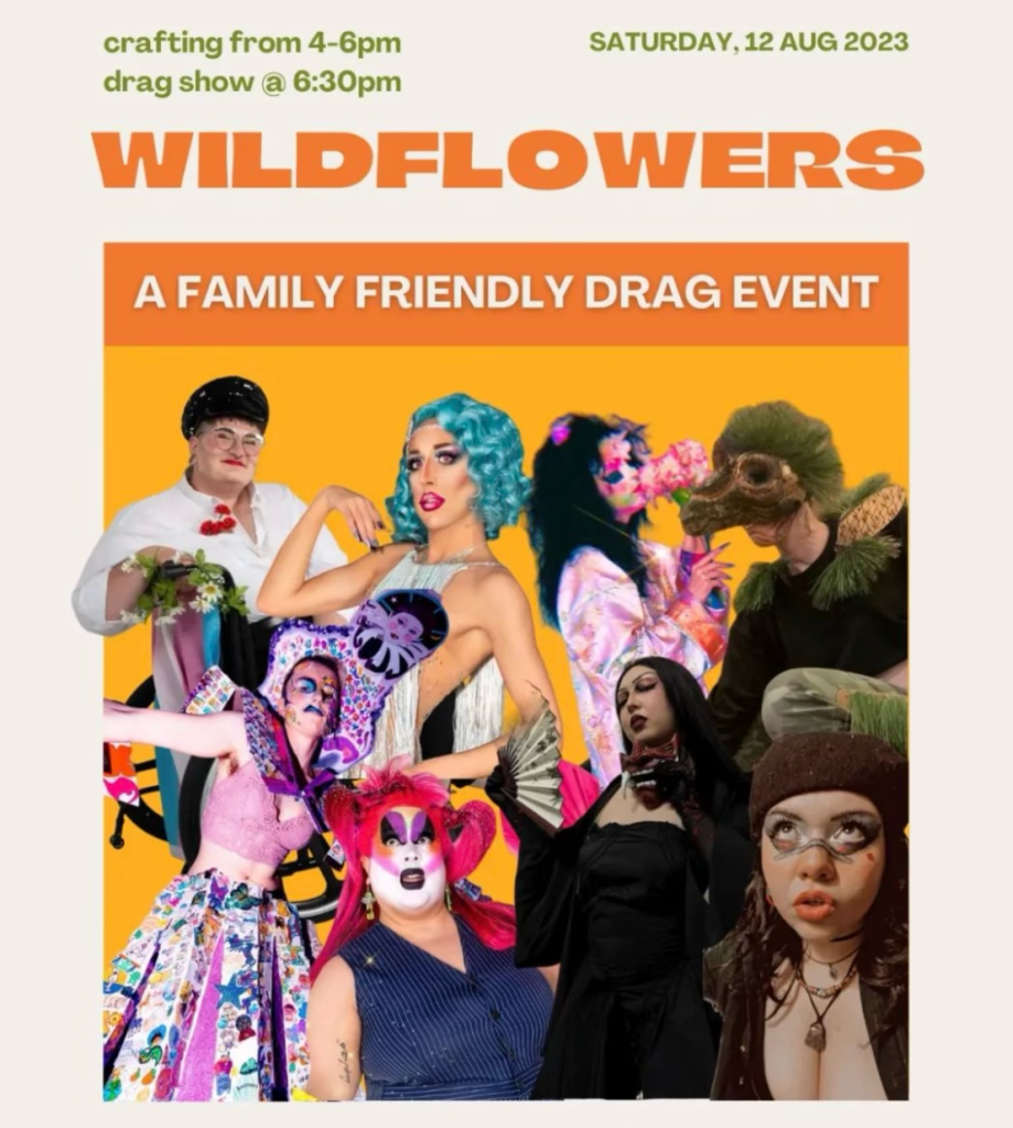 Come on out to Just Food for an incredible all-ages drag show and craft space! This show is bursting with local talent and drag artistry!